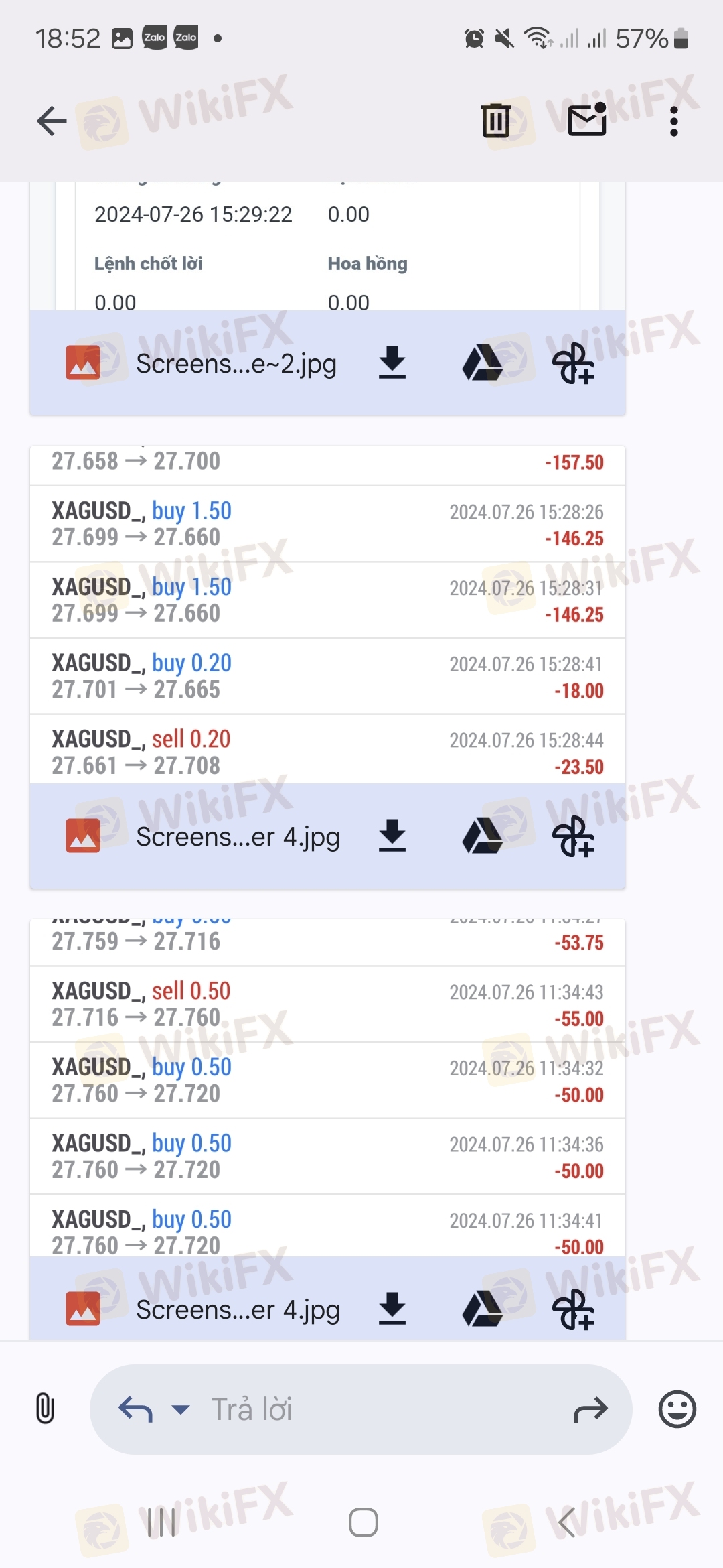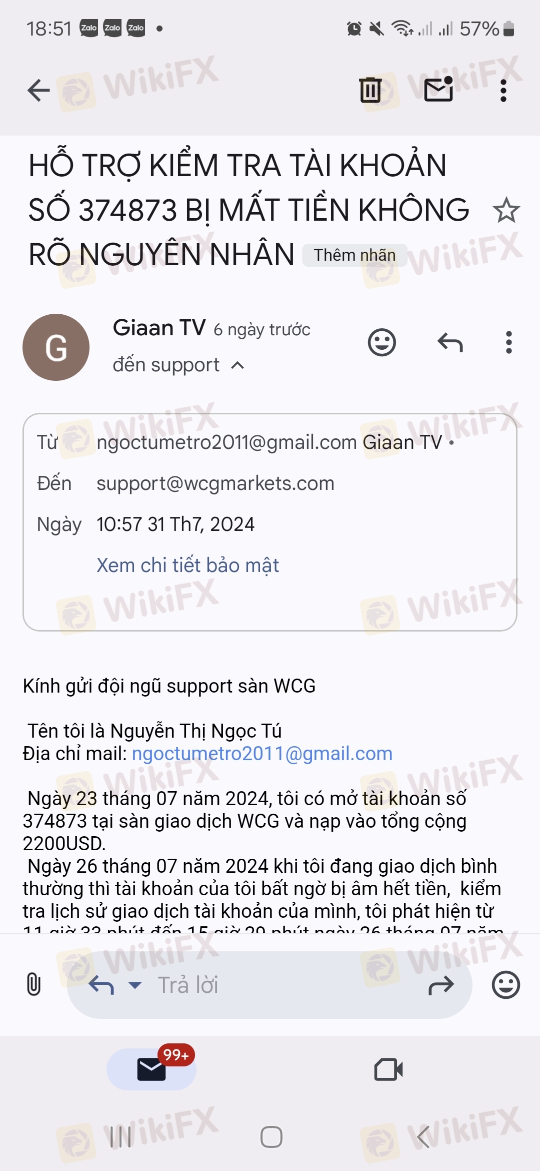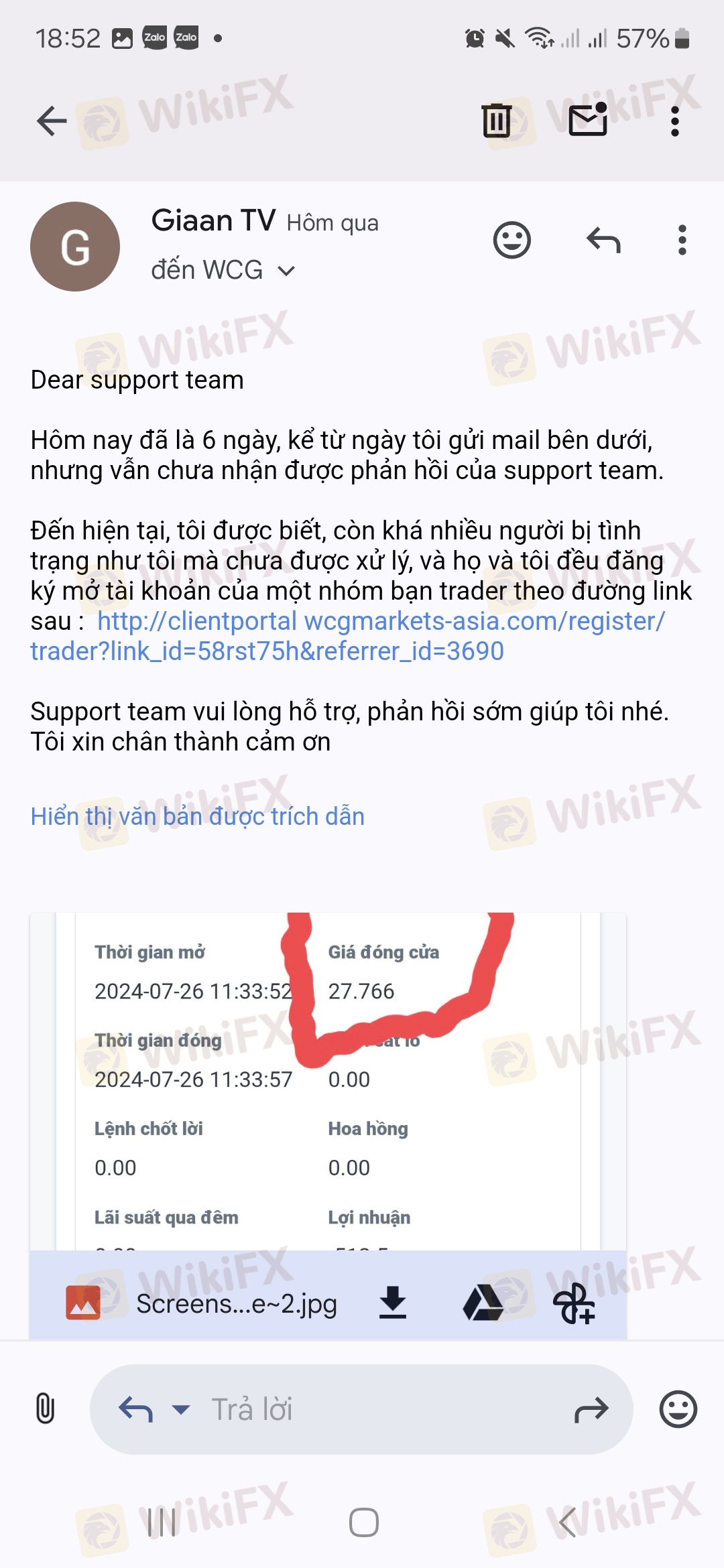 2024年7月23日,我開設了一個帳戶,在WCG市場存入了1500美元並進行交易。2024年7月26日,我又存入了700美元。在我正常交易的時候,我的帳戶突然變成負數,並且損失了所有的錢(當我檢查交易歷史時,我發現有許多交易以完全不同於市場價格的價格執行,而且這些交易並不是我發起的)。我已經聯繫了引導我在WCG市場開設帳戶的人尋求幫助,但我無法再聯繫到他們。我還向WCG支援部門發送了三封電子郵件,但對於這個問題我沒有收到任何回應。